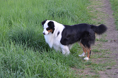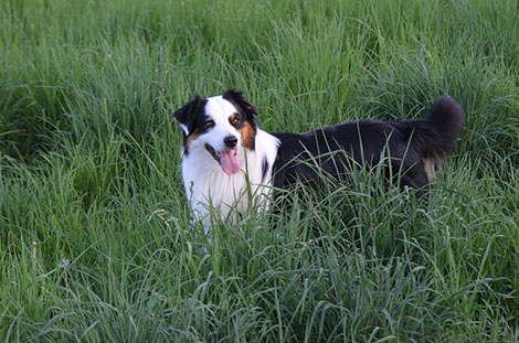 Nach seiner Geburt wurde Loki von seiner damaligen Züchterin an eine Familie gegeben, die ihn als Sofahund gehalten haben und sich dann gewundert haben warum er auf einmal so "komisch" wurde. Australian Shepards sind eben keine Sofahunde. Sie haben ihn dann wieder an einen anderen Züchter gegeben, von dem wir ihn dann wieder geholt haben.